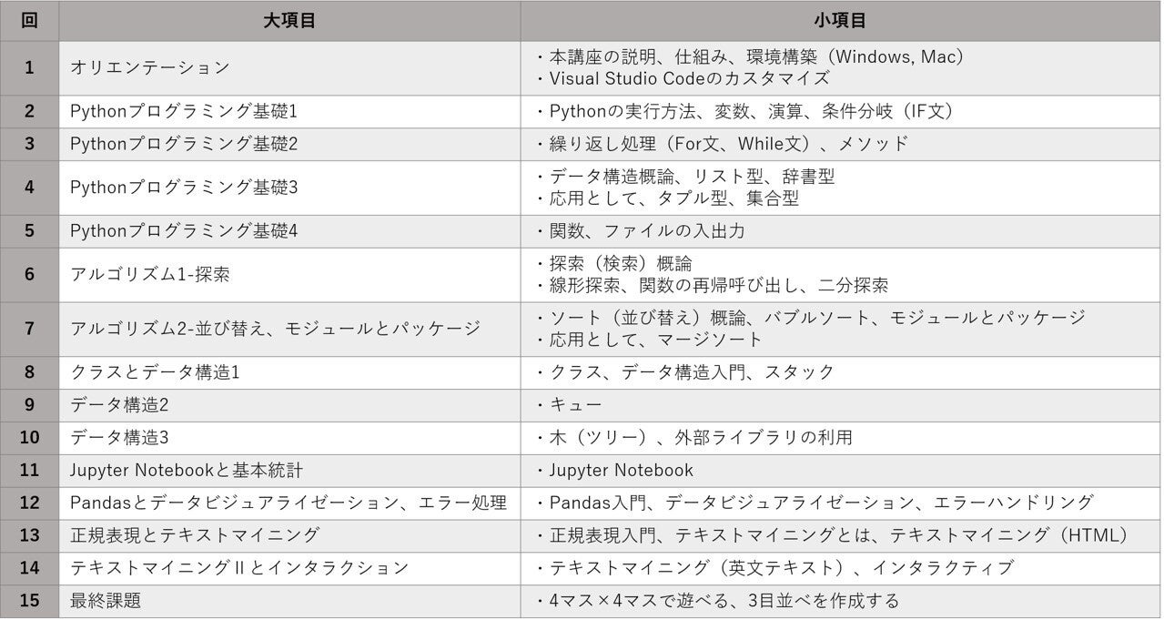 本パッケージでは、主にPythonプログラミングを取り上げています。制御構造とデータ構造、基本アルゴリズムの基礎を学び、プログラミング思考を身につけるとともに、データ処理のためのツールとして、統計処理、テキストマイニングの入門的なプログラムも扱います。