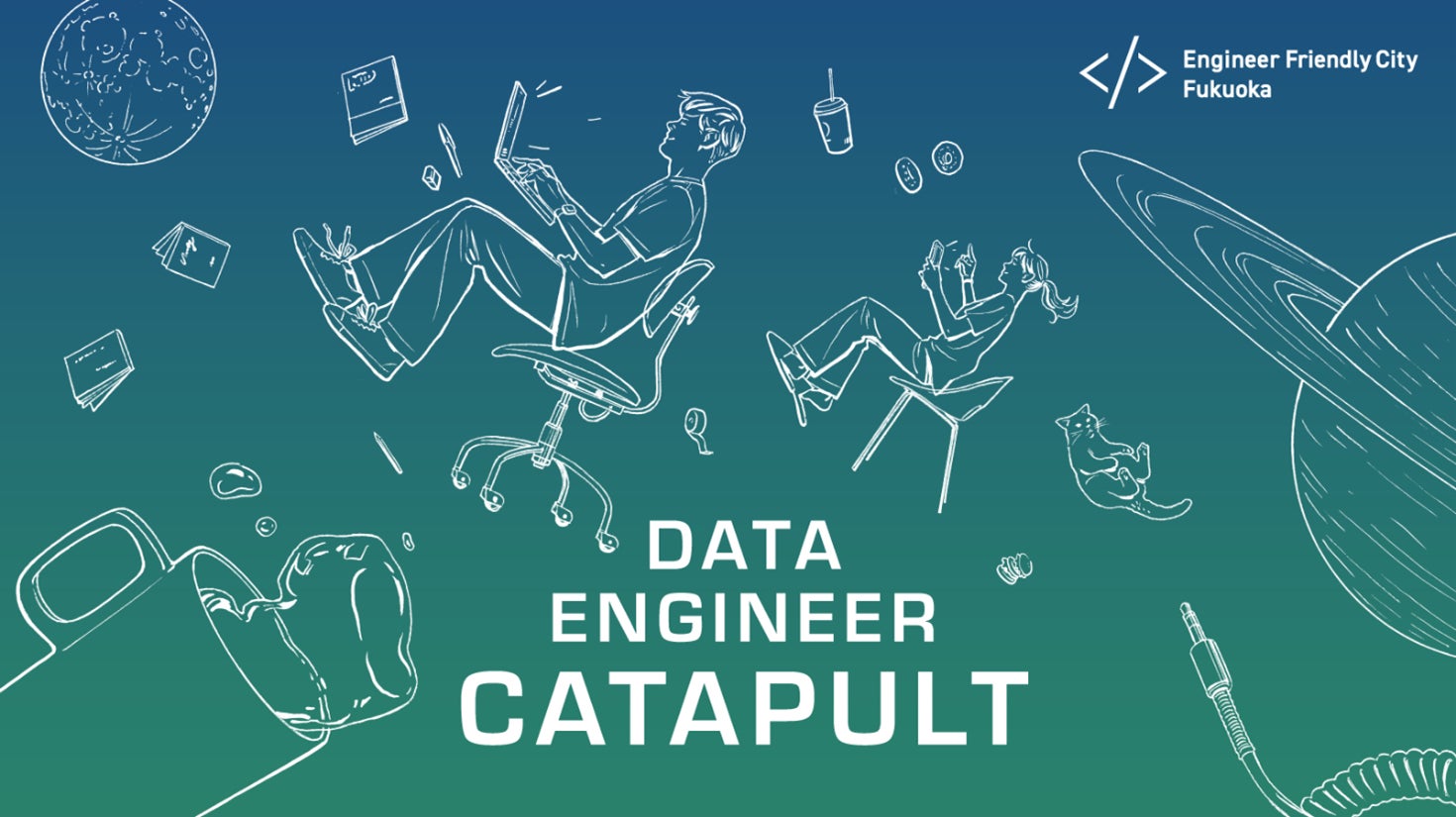 そこで、福岡市と福岡のIT・スタートアップ企業の全面協力のもと、エンジニアを目指す福岡の学生たちを発掘し、地場企業・テクノロジーとの出会いをつくり、新たなエンジニアの発射台となることを目指して、インターン直結型エンジニアブートキャンプ「データエンジニア・カタパルト」を開講します。