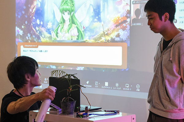 「日常の小さな営みが自己実現の芽になる」という仮説を、植物への水やりで検証。ひと吹きの給水をトリガーに、三色LED・LINE通知・擬人化ディスプレイが連動し、行動に対して“エモい反応”という感情的な報酬を即時に返します。水分量が下がると「水ちょうだい」とリクエスト、給水後は色やメッセージでポジティブに応答。水やりを通じた感情フィードバックを、他の習慣にも横展開できる可能性を示しました。