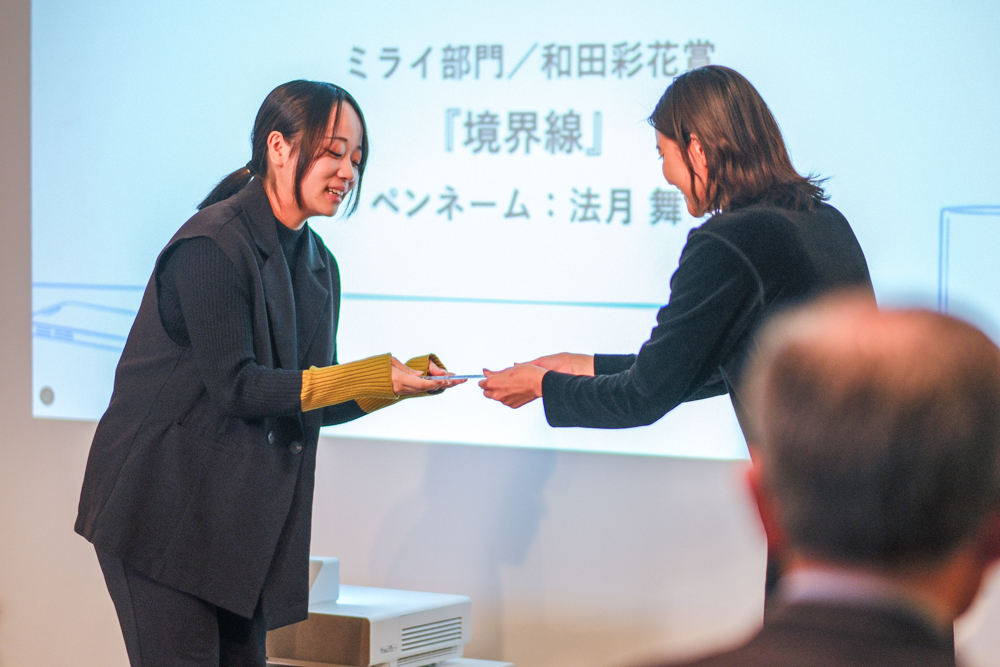 本日はこのような素晴らしい賞をいただけて本当に嬉しく思います。私は今回書いた作品の中で「伝わればいいという価値観が得意ではない」ということを書きましたが、どうしても今のSNSですと音が先行するやりとりが多いので、日本語の意味や正確性があまり重要視されなくなってきてると思っています。それがすごく悲しいというか、寂しいと思っていました。今回、このエッセイコンテストで、それを少しでも共感してほしいし、そういう人もいるなあと思ってもらえたらいいなと思い、今回書いたので、すごく嬉しいです。改めて本日はありがとうございました。