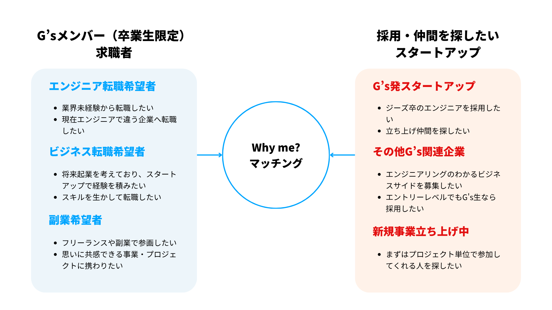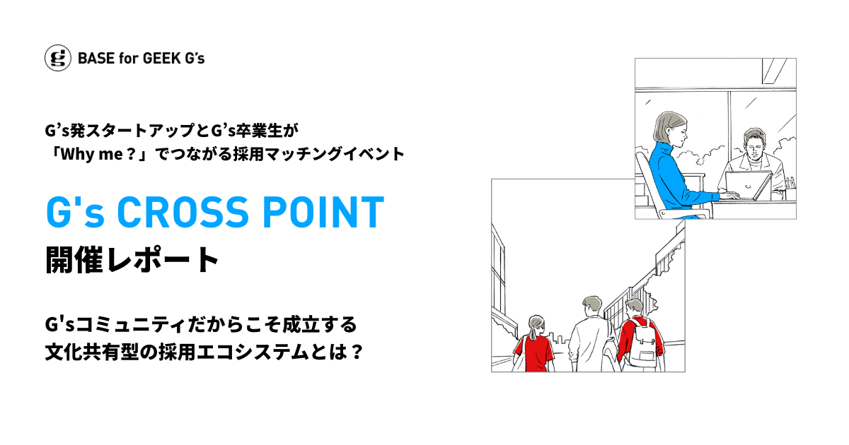 G’s CROSS POINTは、そのコミュニティの中で培われてきた「Why me?(なぜ自分がやるのか)に根差したプロダクトづくり」「自ら挑戦を選び取る姿勢」という文化を共有する者同士が出会うことで、単なる採用ではなく “共に事業を前進させる仲間探し”を実現する採用マッチングイベントです。