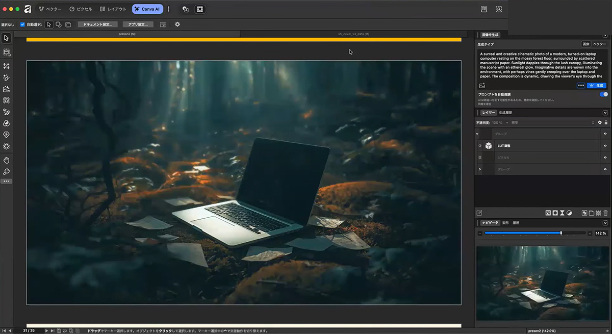Canva AIとの連携(有償)でこのようなリッチな表現も可能。ベクターデータの生成にも対応している