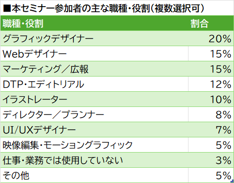 以上のような参加者の声から、手軽さと表現力の中間領域を担うツールとして、Affinityの存在感が徐々に高まりつつある様子がうかがえます。