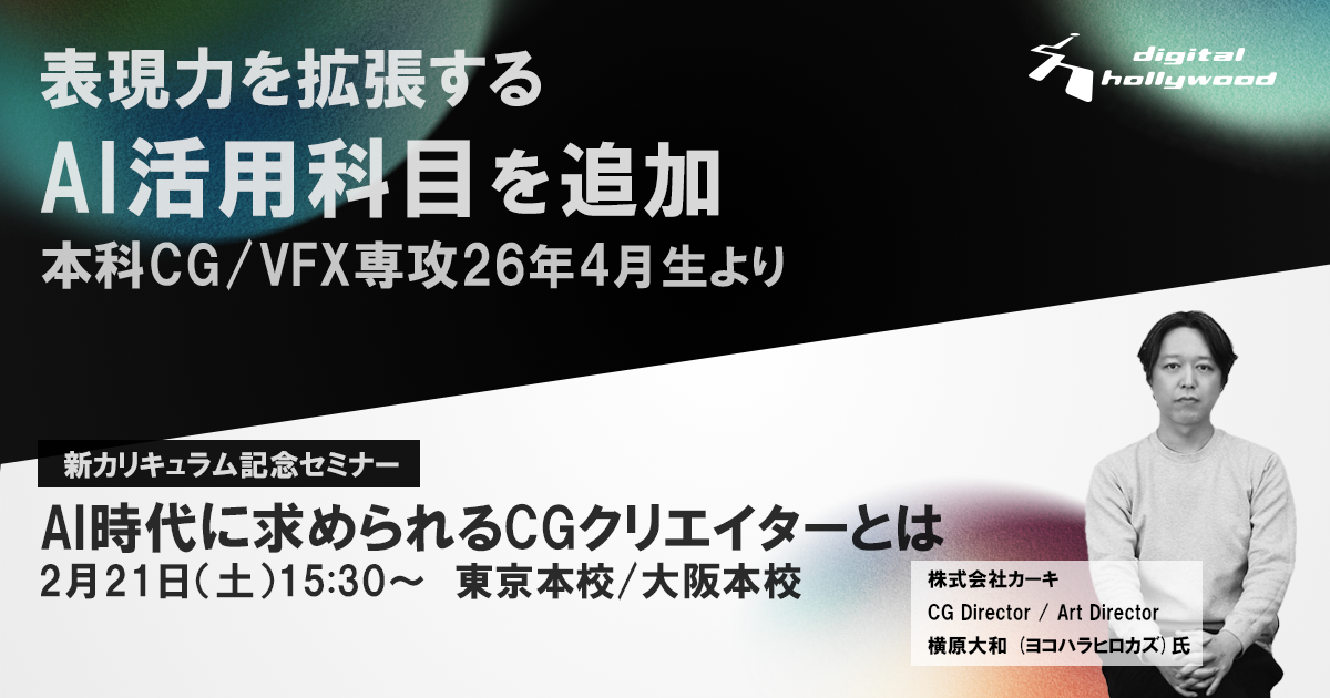 新カリキュラム記念セミナー「AI時代に求められるCGクリエイターとは」日時:2026年2月21日(土)15:30~17:00
