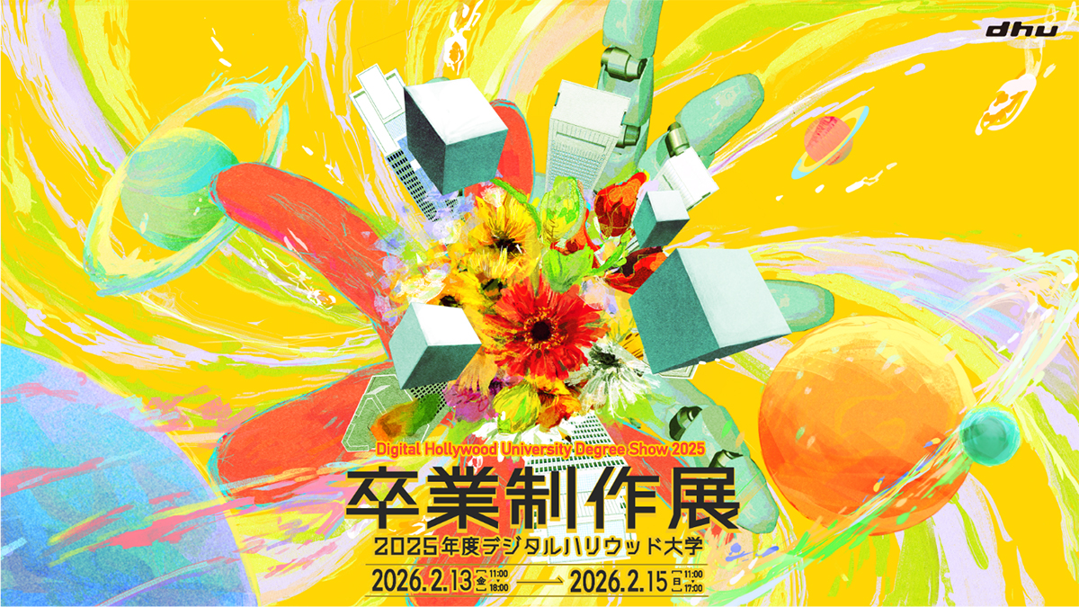 文部科学省認可の株式会社立の大学として、デジタルコンテンツと企画・コミュニケーションを学ぶデジタルコミュニケーション学部(4年制大学)と、理論と実務を架橋し新たなビジネスを生み出すデジタルコンテンツ研究科(専門職大学院)を設置するデジタルハリウッド大学(DHU、所在地 東京・御茶ノ水、学長 杉山知之)では、2026年2月13日(金)~15日(日)の3日間、『2025年度卒業制作展』を開催いたします。