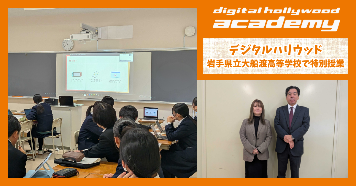 岩手県立大船渡高等学校は、前年度に引き続き「令和7年度 高等学校DX加速化推進事業(DXハイスクール)」に採択されています。前年度は、MacBookおよびFinal Cut Proの基本操作に加え、デザインツール「Canva」を活用した学校紹介動画制作の特別授業をデジタルハリウッドアカデミーにて実施しましたが、第一線で活躍する現役のクリエイターから直接デジタルクリエイティブを学ぶ機会がほしいとの要望を受け、今年度も特別授業を実施することになりました。