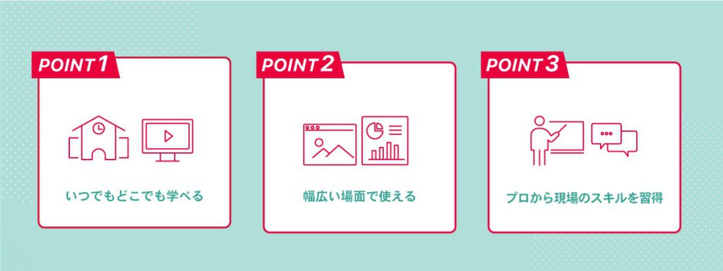 3. プロの講師による実践型ライブ授業により現場で使えるスキルを養う